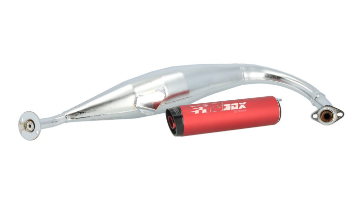Mit der XS-Chrom Auspuffanlage von Tecnigas erhältst du eine sportliche Auspuffanlage für deine Derbi Senda und Aprilia RX/SX. Die Auspuffanlage bietet einen hervorragenden Sound sowie eine durch die rote Eloxierung unterstrichene Sportlichkeit der Anlage. Das Chrom verleiht deiner Maschine einen einzigartigen Look, der nicht zu übersehen ist.
