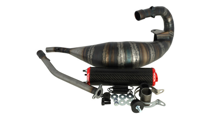 Maximale Leistung, brutaler Sound und ein aggressiver Racing-Look – mit dem Voca Cross Carbon 80/90cc High-Mount Auspuff verwandelst du deine Rieju MRT in ein echtes Power-Bike. Der Endschalldämpfer sitzt sportlich oben unter der Sitzbank und sorgt mit seiner Carbon-Hülle für das typische Voca-Design. Ideal für Tuning-Setups ab 80ccm – und nichts für halbe Sachen.