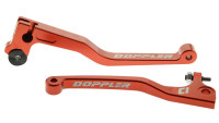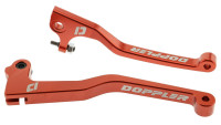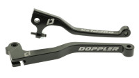 Ein Satz Hebel für Beta RR mit Bremszylindern vom Typ Grimeca. Die Hebel sind aus hochwertigem Aluminium CNC-gefräst, mit top eloxiertem Finish und weißem Doppler-Logo.