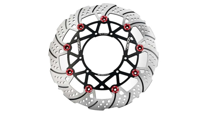 Du erhältst eine hochwertige, schwimmend gelagerte Bremsscheibe von Voca Racing mit einem Durchmesser von 300 mm.