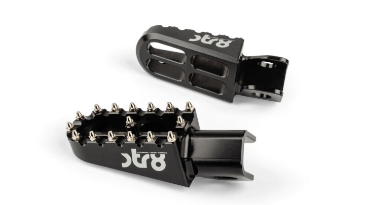 Fußrasten STR8 Derbi Senda, Gilera SMT/RCR, Aprilia RX/SX ab Bj. 06, versch. Farben, Fahrer