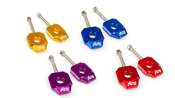 Dank des edlen, farbig eloxierten Finishs setzen die Kettenspanner einen starken optischen Akzent und sind in mehrere Farben erhältlich.