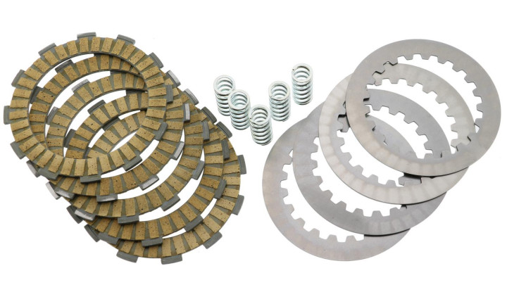 Bei getunten Motoren passiert es oft, dass die Original- Kupplung wegen der gesteigerten Leistung durchrutscht. Um dies zu verhindern, werden Tuning Kupplungsscheiben verbaut. Das Kit von Polini beinhaltet einen Satz verstärkter Kupplungsfedern (5 pcs.), einen Satz Metalltrennscheiben (4 pcs.) und einen Satz Kupplungsscheiben (5 pcs.). Die Lamellen und Reibscheiben sind verglichen mit der Originalkupplung etwas dünner, dafür passt jedoch ein Scheibenpaar mehr in den Kupplungskorb. Das wirkt sich zusätzlich positiv auf den Schlupf der Kupplung aus.