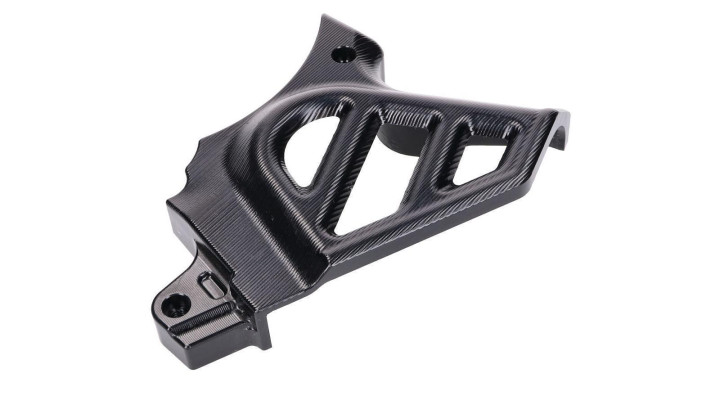 CNC gefräste Ritzelabdeckung aus Aluminium, Schwarz Eloxiert für Schaltmoped mit Minarelli AM, Generic, KSR-Moto, Keeway, Motobi, Ride, 1E40MA oder 1E40MB Motor. Die aus Aluminium gefräste Abdeckung für das Ritzel ist eine unter anderem wesentlich stabilere Variante, da es nicht so leicht biegt und bricht wie der Kunststoff. Des Weiteren kannst du durch diese Abdeckung dein Ritzel sehen, somit ist es auch hervorragend für Tuningmopeds.