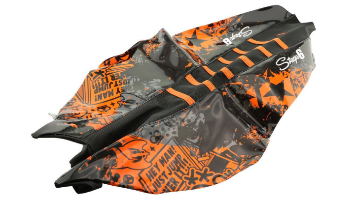 Ein Sitzbankbezug muss einerseits guten Grip bieten, damit ihr auch bei sportlichen Einsätzen nicht rutscht und die Arme entlastet werden, andererseits soll er natürlich auch cool aussehen. Die Sitzbankbezüge von Stage6 bieten beides: exzellenter Grip dank griffigem Oberflächenmaterial und 6 bunt abgesetzten Querstreifen und sportlicher Offroad Racing Look mit Seitenteilen aus Vinyl mit Stage6 Logo und bunter Grafik, die übrigens hervorragend zu den dazugehörigen Stage6 Verkleidungs Dekor Kits passen.